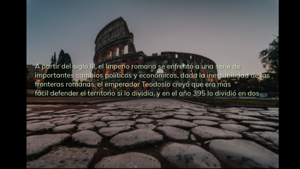 A partir del siglo III, el Imperio romano se enfrentó a una serie de importantes cambios políticos y económicos, dada la inestabilidad de las fronteras romanas, el emperador Teodosio creyó que era más fácil defender el territorio si lo dividía, y en el año 395 lo dividió en dos