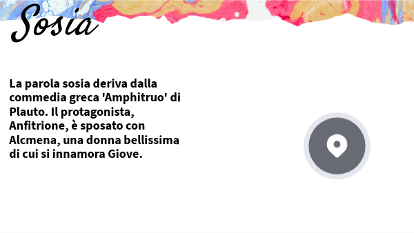 La parola sosia deriva dalla commedia greca 'Amphitruo' di Plauto. Il protagonista, Anfitrione, è sposato con Alcmena, una donna bellissima di cui si innamora Giove.