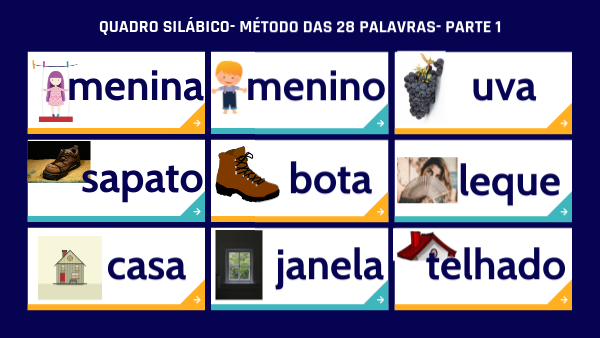 QUADRO SILÁBICO- MÉTODO DAS 28 PALAVRAS- PARTE 1
