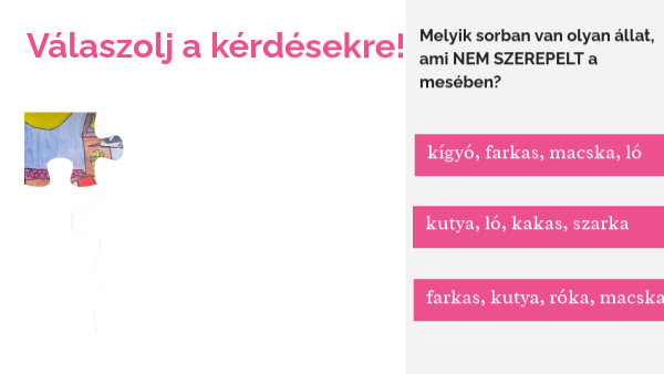 Melyik sorban van olyan állat, ami NEM SZEREPELT a mesében?