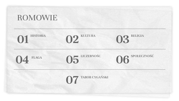 Romowie, powszechnie zwani Cyganami, to zamknięta społeczność kultywująca swe tradycyjne obyczaje, rządząca się swoimi własnymi prawami oraz posługująca się sobie tylko znanym językiem. Pochodzenie Romów było długo niejasne.