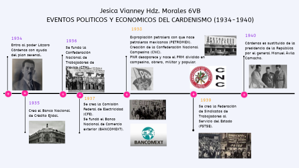 Expropiación petrolera con que nace petroleros mexicanos (PETROMEX).Creación de la Confederación Nacional Campesina (CNC). PNR desaparece y nace el PRM dividido en campesino, obrero, militar y popular.