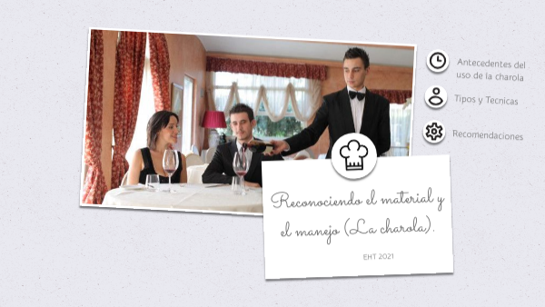 La charola es una importante herramienta de trabajo y el manejo adecuado de esta se determina de acuerdo al servicio del restaurante en donde se trabaje. Existen 3 tipos de charolas: Imperial: sirve para los banquetes, eventos de alta magnitud.Ovalada: es muy conocida en bares y restaurantes para bebidas.Cuadrada: se puede utilizar en servicio a cuartos de los hoteles.