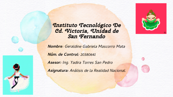 Nombre: Geraldine Gabriela Mascorro Mata Núm. de Control: 20380641 Asesor: Ing. Yadira Torres San Pedro Asignatura: Análisis de la Realidad Nacional.