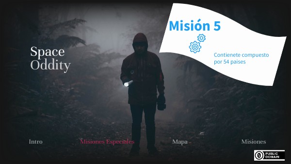 En este mapa encontrarás los lugares donde cumplir tu misión. Deberás recorrer los 5 continentes para poder eliminar la amenza inminente. En tu viaje enontrarás las pistas necesarias para averiguar quien o quienes están amenzan poniendo en peligro tu planeta y la vida que en él se desarrolla.