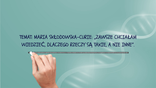 TEMAT: MARIA SKŁODOWSKA-CURIE: „ZAWSZE CHCIAŁAM WIEDZIEĆ, DLACZEGO RZECZY SĄ TAKIE, A NIE INNE”.