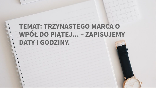 TEMAT: TRZYNASTEGO MARCA O WPÓŁ DO PIĄTEJ... – ZAPISUJEMY DATY I GODZINY.