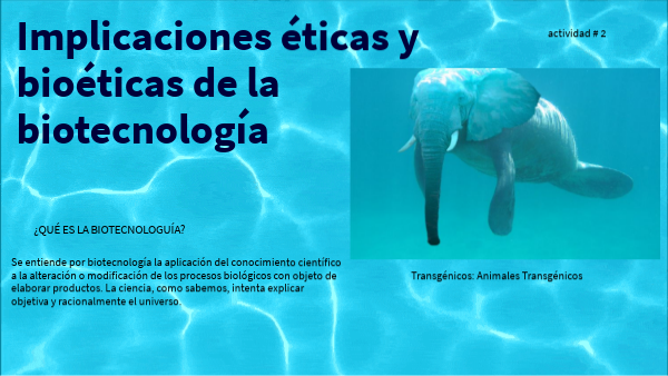 ¿Cómo llegaste a tu idea principal?La biotecnología es definida como el conjunto de técnicas, procesos y métodos que utilizan organismos vivos o sus partes para producir una amplia variedad de productos. ¿Qué has aprendido? E aprendido que la biotecnolgÍa tiene varias ventajas y tamvien consecuencias muy graves como destrución y contaminación. ¿Cuáles son los puntos clave a resaltar? Cruce de ADN entre especies animales y vegetales . Destrucciones masivas. Realizan métodos y procesos con organismos vivos. ¿Qué quiero que recuerde mi audiencia cuando termine mi exposición?, Quiero que recuerden lo que se le presento y transmitan apersonas conocidas para evitar destrucción ,contaminación ,quiero que recuerden mi trabajo ,y que sepan que me esforzado. ¿Qué ejemplos apoyan los puntos clave de mi idea?