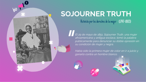 El 29 de mayo de 1851, Sojourner Truth, una mujer afroamericana y antigua esclava, tomó la palabra públicamente para denunciar su doble opresión en su condición de mujer y negra. Había sido la primera mujer de color en ir a juicio y ganarlo contra un hombre blanco.