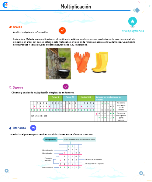 Interiorizo el proceso para resolver multiplicaciones entre números naturales.
