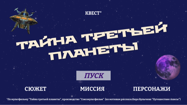 *По мультфильму "Тайна третьей планеты", производство "Союзмультфильм" (по мотивам рассказа Кира Булычева "Путешествие Алисы")