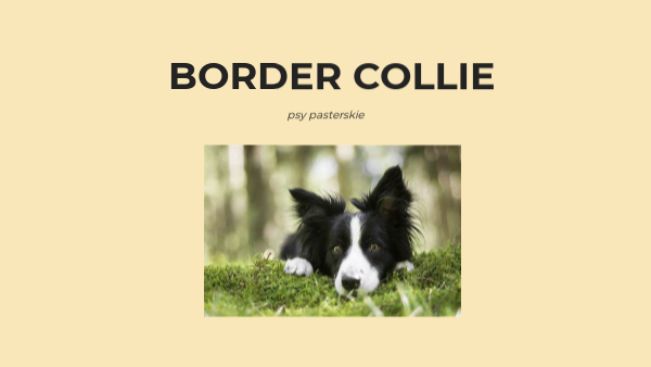 Border collie to wybitnie inteligentny, wrażliwy, ukierunkowany na współpracę z ludźmi owczarek o półdługim lub krótkim, gęstym i miękkim włosie. Spostrzegawczy, bardzo bystry, niezmordowany, wymaga ekstremalnie dużo ruchu i zajęcia.