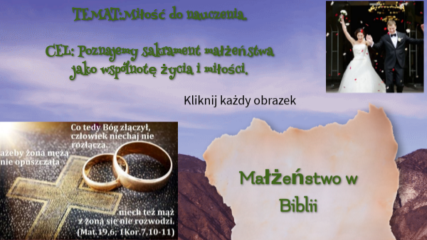 TEMAT:Miłość do nauczenia. CEL: Poznajemy sakrament małżeństwa jako wspólnotę życia i miłości.