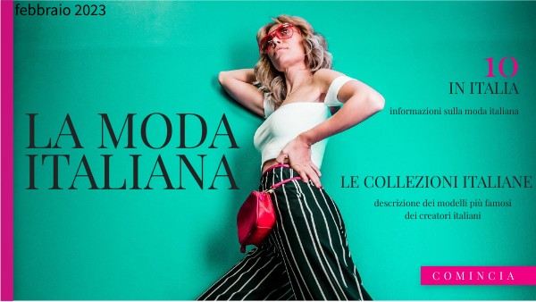 Da molti anni l'Italia è sinonimo di moda. Il "made in Italy", espressione del gusto e della raffinatezza degli italiani, è uno dei settori più sviluppati dell'economia con esportazioni in tutto il mondo.