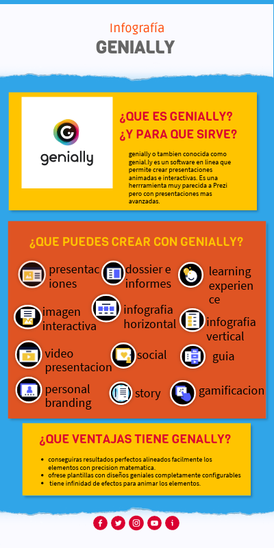 genially o tambien conocida como genial.ly es un software en linea que permite crear presentaciones animadas e interactivas. Es una herrramienta muy parecida a Prezi pero con presentaciones mas avanzadas.