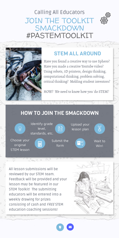 Have you found a creative way to use Sphero? Have you made a creative Youtube video? Using robots, 3D printers, design thinking, computational thinking, problem solving, critical thinking? Molding student inventors? HOW? We need to know how you 'do STEM!'