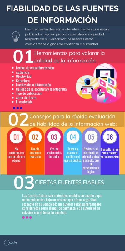 Las fuentes fiables son materiales creíbles que están publicados bajo un proceso que ofrece seguridad respecto de su veracidad; los autores están considerados dignos de confianza o autoridad.