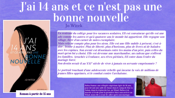 En rentrant du collège pour les vacances scolaires, Efi est convaincue qu'elle est une ado comme les autres et qu'à quatorze ans le monde lui appartient. Elle regagne son village, fière d'un carnet de notes exemplaire. Mais cela ne compte plus pour les siens. Elle est une fille nubile à présent, c'est-à-dire : bonne à marier. Plus de liberté, plus d'horizons, plus de livres ni de balades avec les copines. Son avenir est désormais entre les mains d'un père, puis celles du mari qu'on lui a choisi. Elle est devenue une marchandise, un cadeau que s'offrent les familles. Arrachée à l'enfance, ses rêves piétinés, Efi entre dans l'enfer du mariage forcé. Son destin serait-il au XXI° siècle de vivre à jamais en servante emprisonnée ? Le portrait touchant d'une adolescente rebelle qui incarne la voix de millions de jeunes filles opprimés, et le combat contre l'archaïsme.