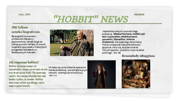 Najbardziej znanymi utworami tego pisarza są : Władca Pierścieni, Hobbit czyli tam i z powrotem, Niedokończone opowieści, Silmarillon, Historia Śródziemia. Od wczesnego dzieciństwa Tolkien przejawiał niezwykłe zdolności językowe. Mówi się, że pisarz znał 30 różnych języków - podobno uczył się także polskiego . red. SB