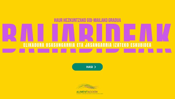 Jarraian ikusiko ditugun baliabideak ikerketa-lanak, taldekako lanak edo aurkezpenak garatzeko oinarri izango ditugu, ikuspegi kritiko batetik haurren elikaduraren gaur egungo egoeran sakontzen lagunduko digutenak. Metodologikoki, egokia izango da informazio hori integratzen lagunduko duten hausnarketa eta ekoizpen uneak sortzea; izan ere, horiek balioak, jokabideak eta jarrerak aldatzea eragin dezakete.