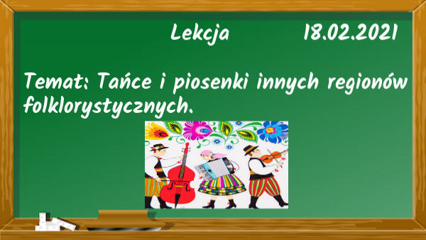 Lekcja 18.02.2021 Temat: Tańce i piosenki innych regionów folklorystycznych.