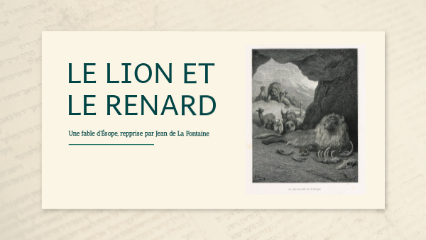 Les Renards gardant la maison, Un d’eux en dit cette raison. Les pas empreints sur la poussière, Par ceux qui s’en vont faire au malade leur cour, Tous, sans exception, regardent sa tanière, Pas un ne marque de retour. Cela nous met en méfiance. Que sa Majesté nous dispense. Grand merci de son passeport. Je le crois bon ; mais dans cet antre Je vois fort bien comme l’on entre, Et ne vois pas comme on en sort.