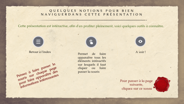 Pensez à faire passer la souris sur chaque page pour faire apparaître des informations intéressantes