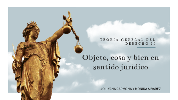 Las cosas pueden ser objeto de situaciones jurídicas y cuando asumen en acto este carácter pasan a ser bienes.Obsérvese entonces que los bienes tienen dos elementos uno material que es la entidad espacial y otro formal que viene siendo la calificación jurídica. A su vez al elemento material se le debe asociar la calificación. En sentido más frecuente cosa designa el término objetivo de las situaciones jurídicas patrimoniales. En síntesis el objeto en sentido teórico general es un fenómeno espacial, las cosas son los elementos materiales de los bienes. Pueden ser materiales o inmateriales, publico, privados, fungibles o no fungibles, divisibles e indivisibles, etc.