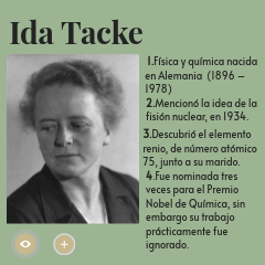 3.Descubrió el elemento renio, de número atómico 75, junto a su marido.
