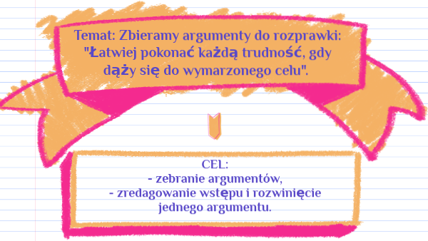 Temat: Zbieramy argumenty do rozprawki: "Łatwiej pokonać każdą trudność, gdy dąży się do wymarzonego celu".