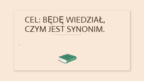 Kryteria sukcesu: 1. Znam pojęcia: synonim/wyraz bliskoznaczny. 2. Potrafię wyszukać w słowniku wyrazy bliskoznaczne. 3. Potrafię zastąpić w wypowiedziach słowa wyrazami o podobnym znaczeniu.