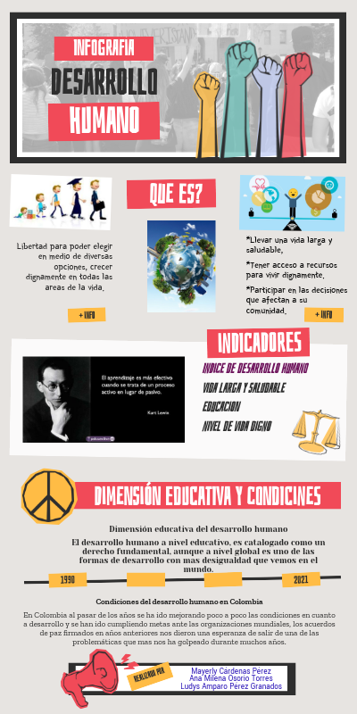 Condiciones del desarrollo humano en Colombia En Colombia al pasar de los años se ha ido mejorando poco a poco las condiciones en cuanto a desarrollo y se han ido cumpliendo metas ante las organizaciones mundiales, los acuerdos de paz firmados en años anteriores nos dieron una esperanza de salir de una de las problemáticas que mas nos ha golpeado durante muchos años.