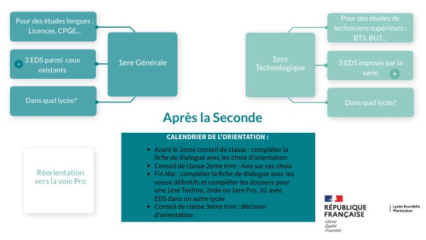 - Fin Mai : compléter la fiche de dialogue avec les voeux définitifs et compléter les dossiers pour une 1ere Techno, 2nde ou 1ere Pro, 1G avec EDS dans un autre lycée