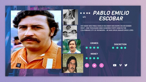 He was drug lord, marujuana ,cocaÏne,crime ,narcos,drug dealer.He died one thousand nine hundred ninety-two , in medellin , six thousand six hundred sixty-two people died .Pablo Escobar was the top of a pyramid made up each member of his or familly
