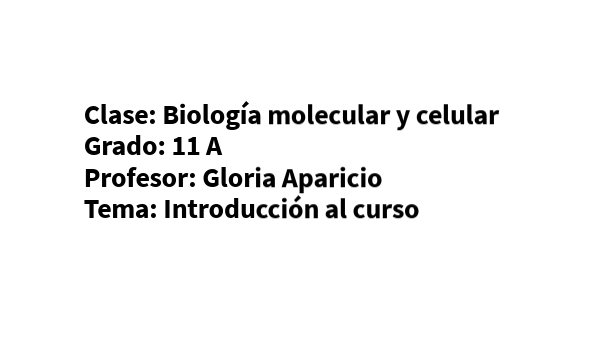 Clase: Biología molecular y celular Grado: 11 A Profesor: Gloria Aparicio Tema: Introducción al curso