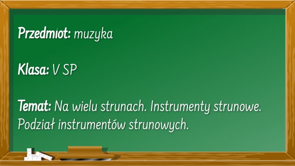 Przedmiot: muzyka Klasa: V SP Temat: Na wielu strunach. Instrumenty strunowe. Podział instrumentów strunowych.
