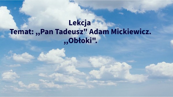 Lekcja Temat: ,,Pan Tadeusz" Adam Mickiewicz. ,,Obłoki".