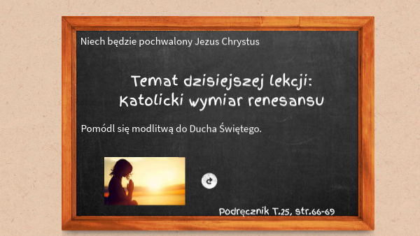 Temat dzisiejszej lekcji: Katolicki wymiar renesansu