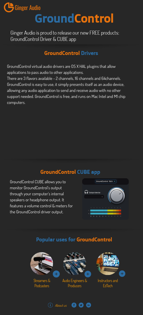 Ginger Audio is proud to release our new FREE products:GroundControl Driver & CUBE app