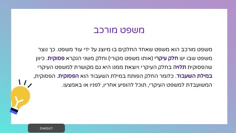 משפט מורכב הוא משפט שאחד החלקים בו מיוצג על ידי עוד משפט. כך נוצר משפט שבו יש חלק עיקרי (אותו משפט מקורי) וחלק משני הנקרא פסוקית. כיוון שהפסוקית תלויה בחלק העיקרי ויוצאת ממנו, היא גם מקושרת למשפט העיקרי במילת שעבוד. כלומר החלק הפותח במילת השעבוד הוא הפסוקית. הפסוקית המשועבדת למשפט העיקרי, תוכל להופיע אחריו, לפניו או באמצעו.