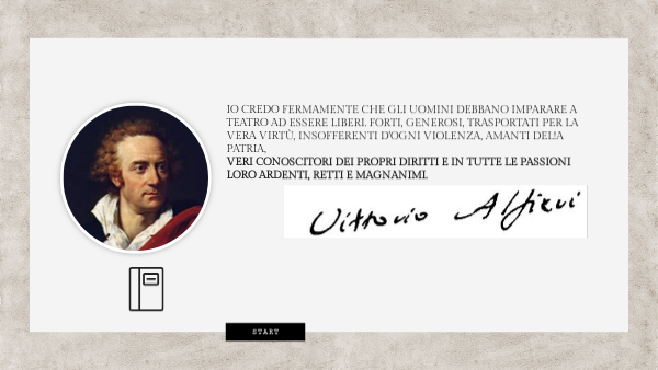 io credo fermamente che gli uomini debbano imparare a teatro ad essere liberi. Forti, generosi, trasportaTi per la vera VIRTÙ, insofferenti d'ogni violenza, amanti del!a patria, Veri conoscitori dei propri diritti E in tutte le passioni loro ardenti, RETTI e mAGNANIMI.