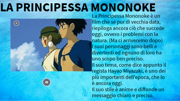 La Principessa Mononoke è un film che se pur di vecchia data, riepiloga ancora ciò che succede oggi, ovvero i problemi con la natura. (Ma ci arriveremo dopo) I suoi personaggi sono belli e divertenti ed ognuno di loro ha uno scopo ben preciso. Il suo tema, come dice appunto il regista Hayao Miyazaki, è uno dei più importanti dell'epoca, che lo è ancora oggi. Il suo stile è anime e diffonde un messaggio chiaro e preciso.