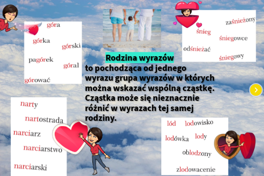Rodzina wyrazów to pochodząca od jednego wyrazu grupa wyrazów w których można wskazać wspólną cząstkę. Cząstka może się nieznacznie różnić w wyrazach tej samej rodziny.
