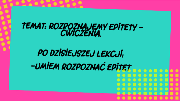 Temat: Rozpoznajemy epitety - ćwiczenia. po dzisiejszej lekcji: -umiem rozpoznać epitet