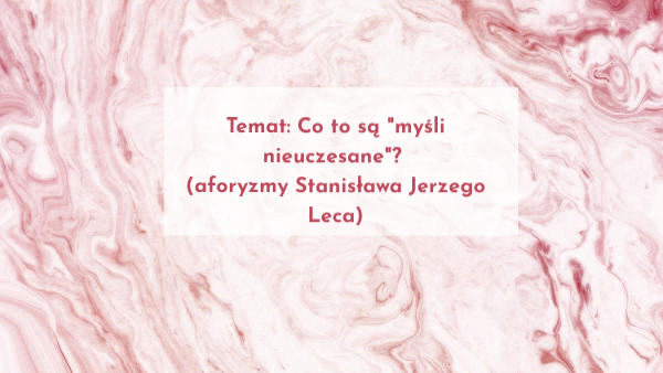 Temat: Co to są "myśli nieuczesane"? (aforyzmy Stanisława Jerzego Leca)