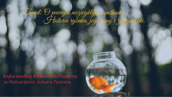 Temat: O pewnym niezwykłym spotkaniu. Historia rybaka, jego żony i złotej rybki.