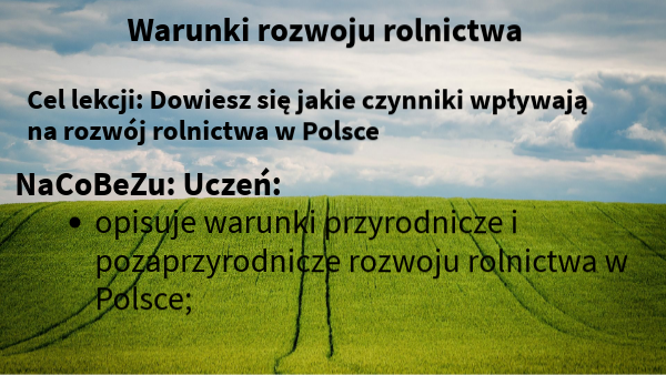 Cel lekcji: Dowiesz się jakie czynniki wpływają na rozwój rolnictwa w Polsce