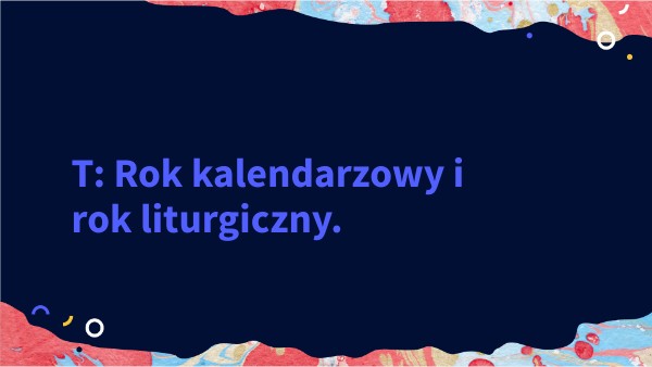 „Rok liturgiczny albo rok kościelny to rok tajemnic życia Chrystusa (…). Rokliturgiczny, zaczynający się Adwentem, czasem oczekiwania na przyjście Pana,swój pierwszy ważny punkt ma w (…) uroczystości Bożego Narodzenia, a drugi,najważniejszy, podczas Świąt Wielkanocnych (…)”.(Youcat 186)