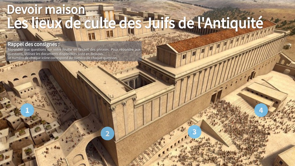 Question n°3 (a) : durant quel siècle est construit le second Temple ? Quel roi agrandit ce temple et quand ? ( /1) Question n°3 (b) : comment les Juifs rendent leur culte à Dieu dans ce second Temple ? ( /1)