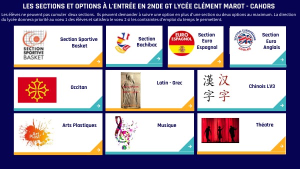 Les SECTIONS et options à l'entrée en 2nde GT Lycée Clément MAROT - Cahors